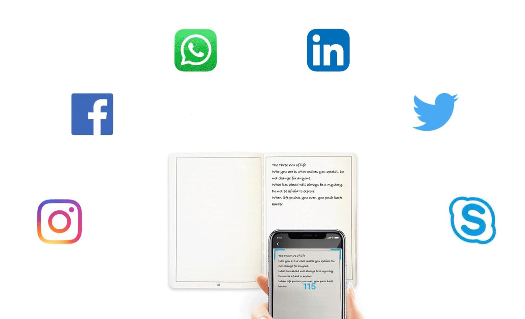 Die intelligenten Scan- und Handschriftenerkennungsfunktionen (OCR) des CZUR Purify Smart Notebooks erfassen jedes einzelne Wort auf deiner Seite und speichern all deine brillanten Ideen sicher und dauerhaft in der Cloud. Natürlich solltest du darauf achten, dass deine Handschrift gut lesbar ist, um die maximale Genauigkeit der Texterkennung zu gewährleisten.