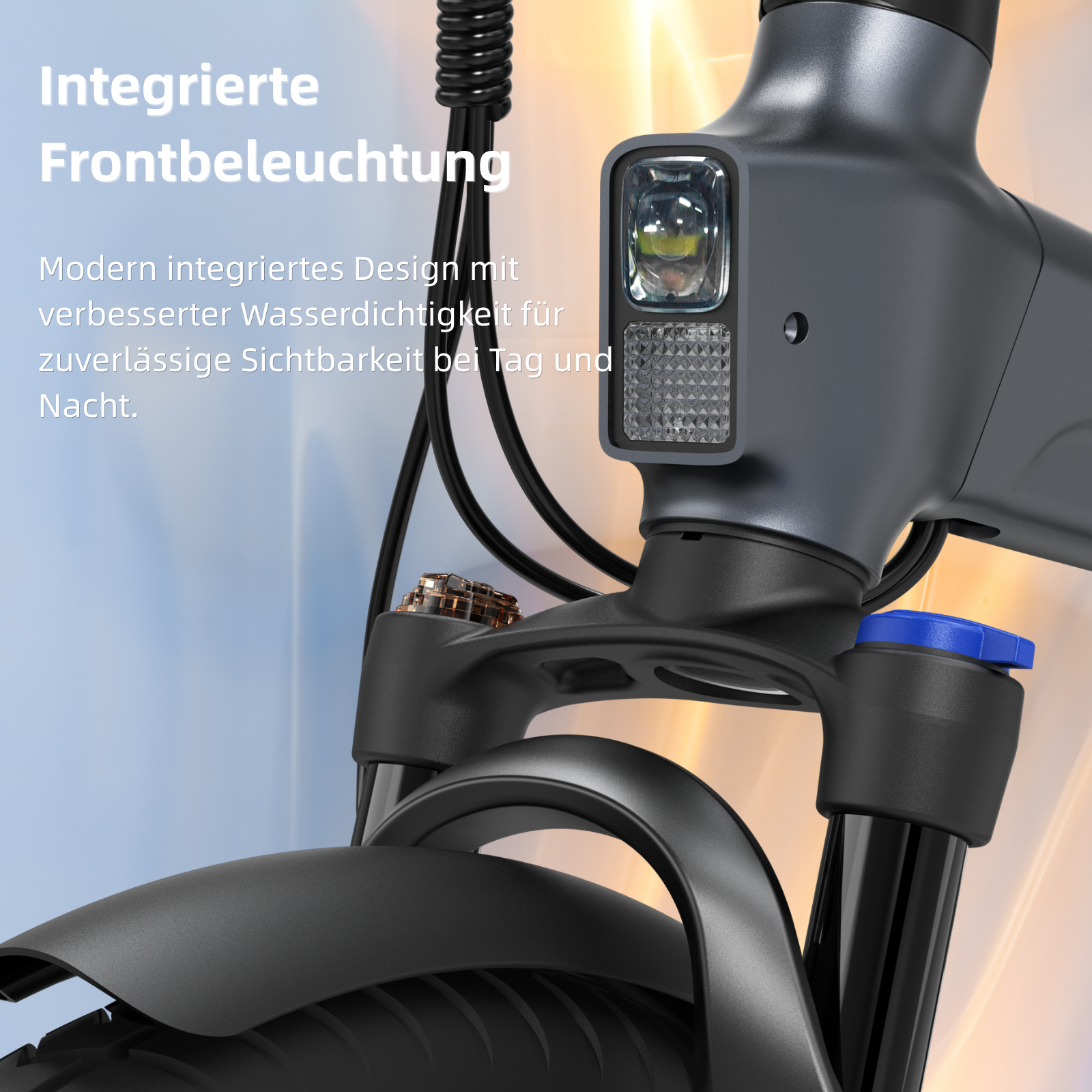 Die integrierten Lichter erhöhen deine Sichtbarkeit im Straßenverkehr und sorgen gleichzeitig für ein modernes, aufgeräumtes Design. So bist du jederzeit sicher unterwegs – egal ob bei Dunkelheit oder schlechten Lichtverhältnissen.