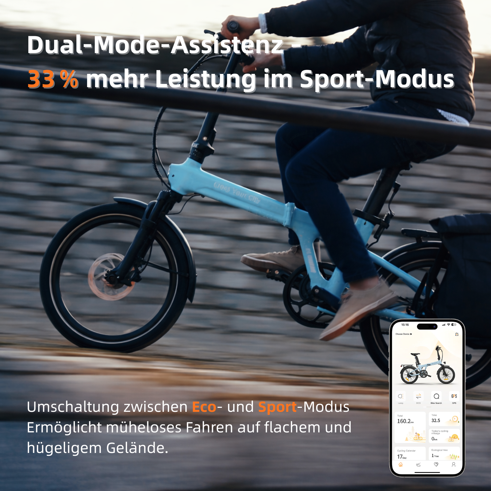 Deine großartigen Fahrten verdienen ein Tagebuch! Verbinde dein Fahrrad mit der HEYBIKE-App und erstelle einen beeindruckenden Kilometerstand!