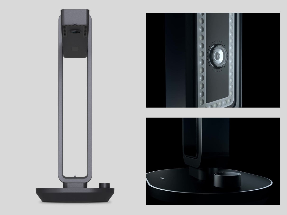 Doppelt als visueller Präsentator. Mit eingebautem Mikrofon und HD-Kamera dient es auch als visueller Moderator. Funktioniert zum Teilen von Dokumenten, Produktprototypen oder Konstruktionsplänen aus einer Overhead-Perspektive.