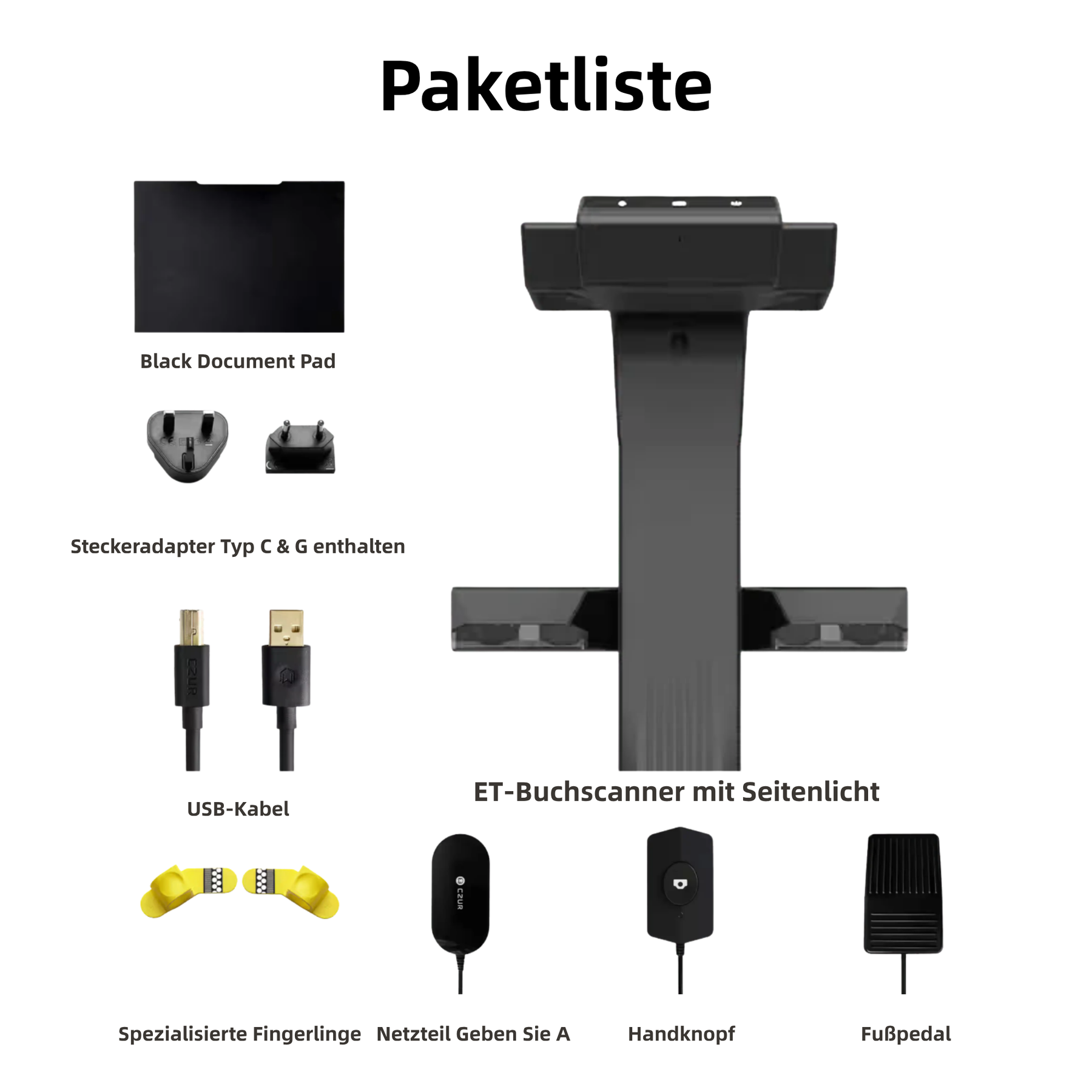 ET16 Plus 16 Megapixel, 250 dpi Auflösung – ideal für grundlegende A3-Dokumenten-Scans.Wenn du nur gelegentlich Bücher, Verträge oder Fotos digitalisieren möchtest, bietet dieses Modell das beste Preis-Leistungs-Verhältnis. Perfekt fürEinstiegslösung für den Heimgebrauch oder den gelegentlichen Einsatz | ET18 Pro 18 Megapixel, 275 dpi Auflösung – gut geeignet für alltägliche Dokumente und Fotoscans.Mit diesem Modell bekommst du eine ausgezeichnete Balance zwischen Preis und Leistungsfähigkeit, wenn du regelmäßig scannen musst. Perfekt fürFür Studierende oder Haushalte, die gelegentlich digitale Kopien von Dokumenten benötigen | ET24 Pro 24 Megapixel, 320 dpi Auflösung – eignet sich hervorragend für das Scannen detaillierter Diagramme, Rechnungen, Verträge und mehr.Dieses Modell bietet eine hohe Präzision und stabile OCR-Erkennung und ist eine großartige Wahl für professionelle Büroanwendungen. Perfekt fürHochwertige Digitalisierungen für Designer, Datenarbeiter, anspruchsvolle Nutzer und kleine bis mittelgroße Unternehmen. | ET25 Pro 25 Megapixel, 330 dpi Auflösung – ideal für Unternehmen und Fachleute, die regelmäßig und hochpräzise Dokumente digitalisieren.Mit erweiterten Scan- und Bearbeitungsfunktionen bietet dieses Modell alles, was du für eine professionelle Dokumentenarchivierung brauchst. Perfekt fürFür anspruchsvolle Nutzer, die eine hohe Auflösung und eine umfassende Funktionalität benötigen | ET Max 38 Megapixel, 410 dpi Auflösung – perfekt für Museen, Forschungsinstitute und professionelle Archivprojekte, die höchste Detailgenauigkeit erfordern. Mit erweiterten Scan-, Bearbeitungs- und Kurvenkorrekturfunktionen bietet dieses Modell alles, was du für die Digitalisierung wertvoller Dokumente und Kunstwerke auf professionellem Niveau benötigst. Perfekt fürFür professionelle Anwender, Museen und Forschungseinrichtungen, die maximale Auflösung und höchste Präzision bei der Digitalisierung wertvoller Dokumente und Kunstwerke benötigen. | |