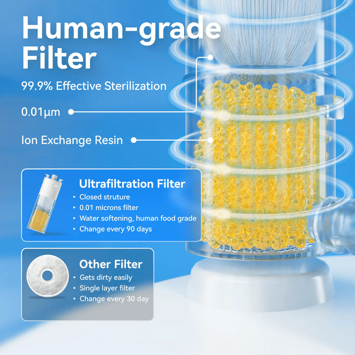 Filtration in Lebensmittelqualität: Hält das Wasser auch über mehrere Tage hinweg frisch – ideal, wenn du einmal nicht zu Hause bist.