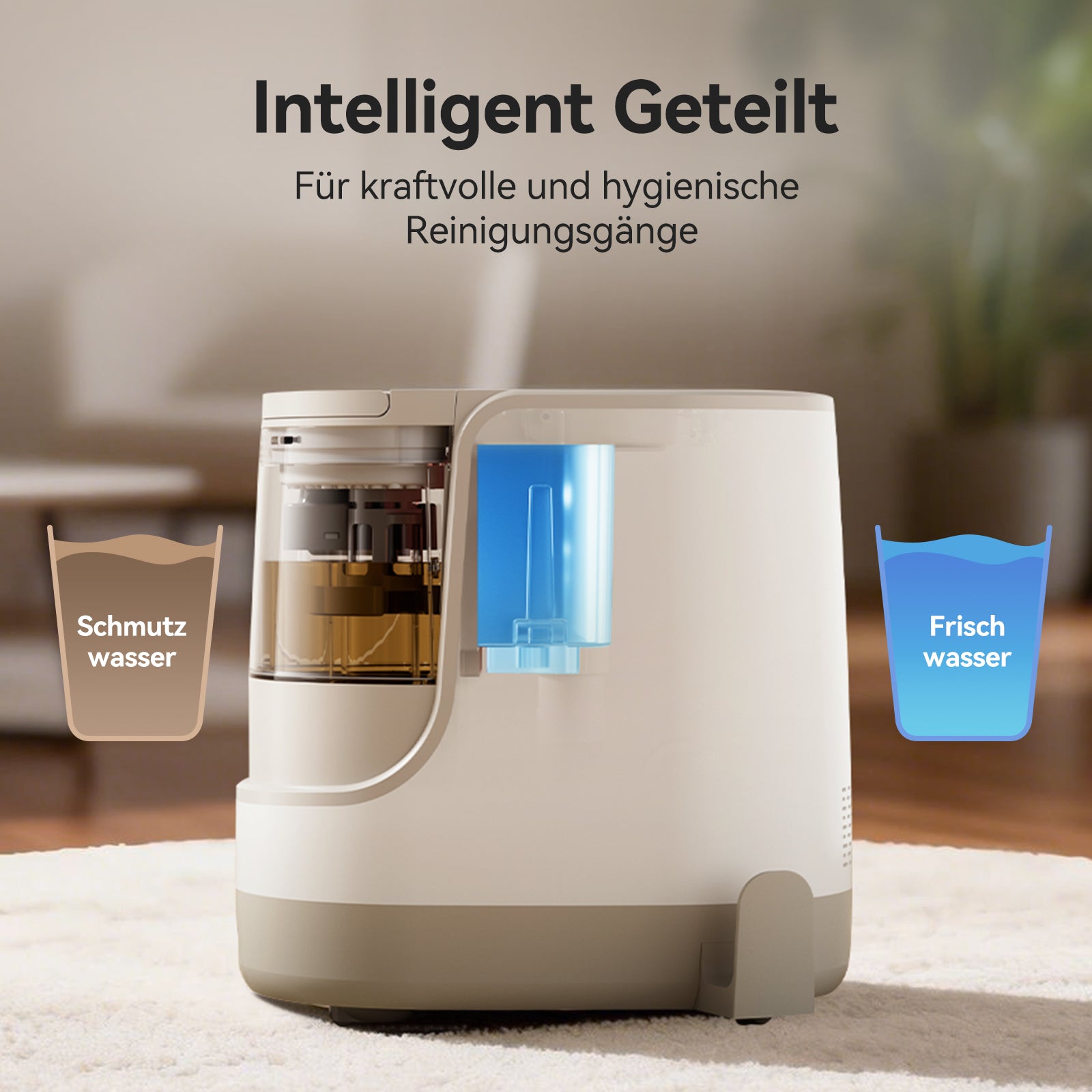 Getrennte Frisch- und Schmutzwassertanks für eine kraftvolle und hygienische Reinigung.
